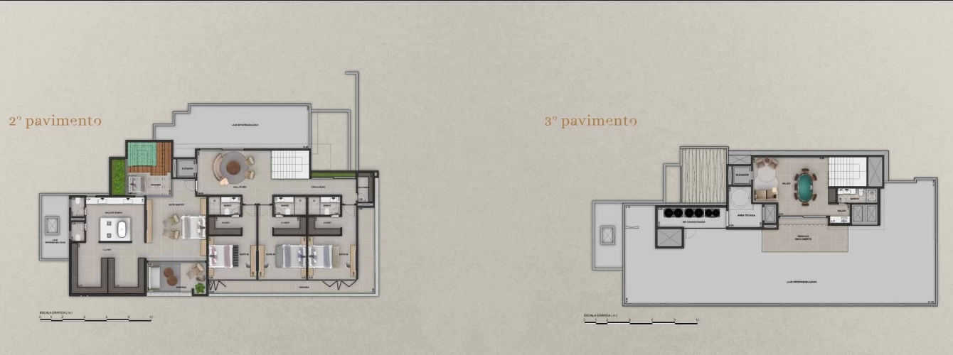 dupla e banheira, varanda privativa e terraço exclusivo com previsão para Spa.